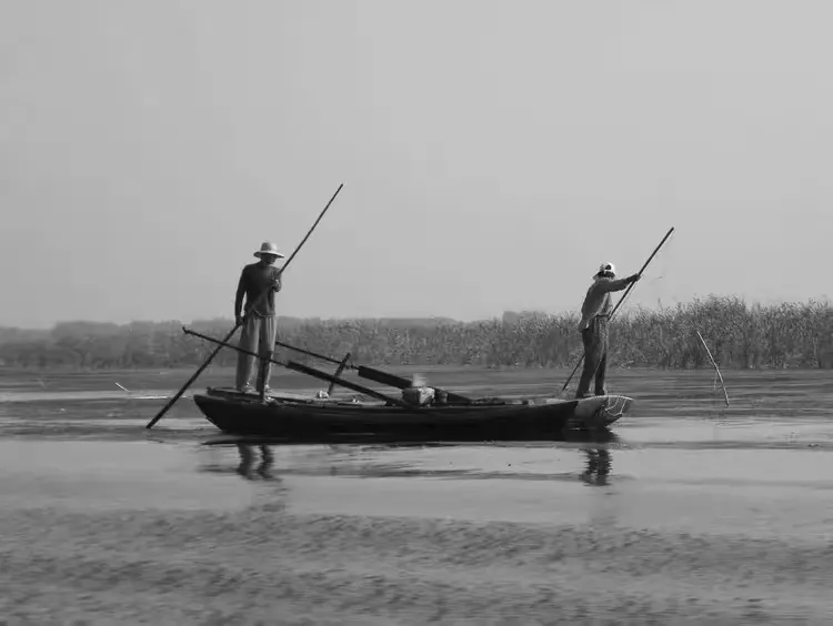 村长阿扬叔让我伴着他儿子阿星和阿厚一起撑船,还有退休的老船工桓叔、炳阳叔,船上一共五个人。